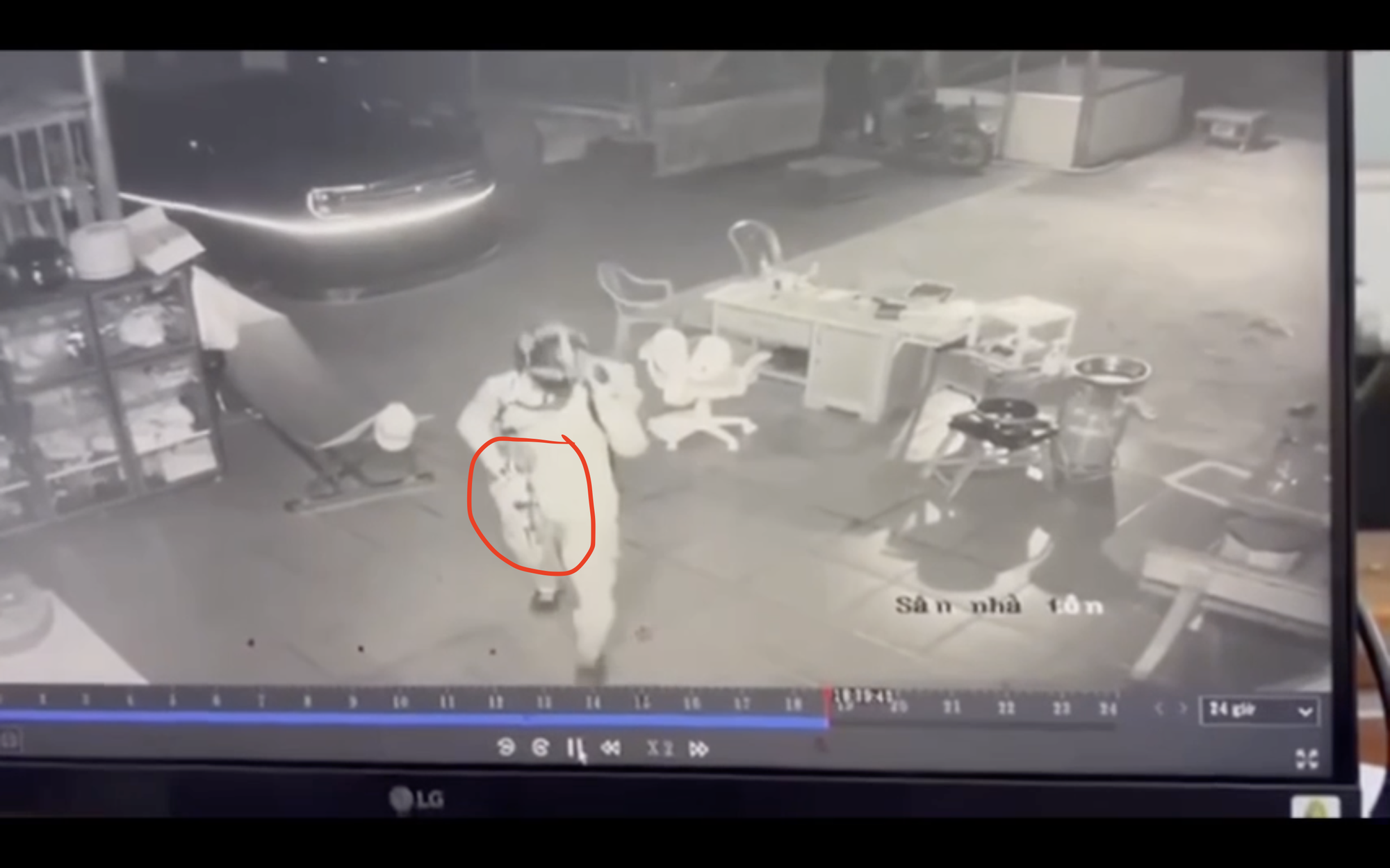 Theo hình ảnh từ camera ghi lại, trong căn nhà nơi phát hiện 3 người tử vong, có 1 người đàn ông lưng mang balo, tay cầm vật giống súng tự chế. Người này mặc trang phục che kín, đeo khẩu trang.