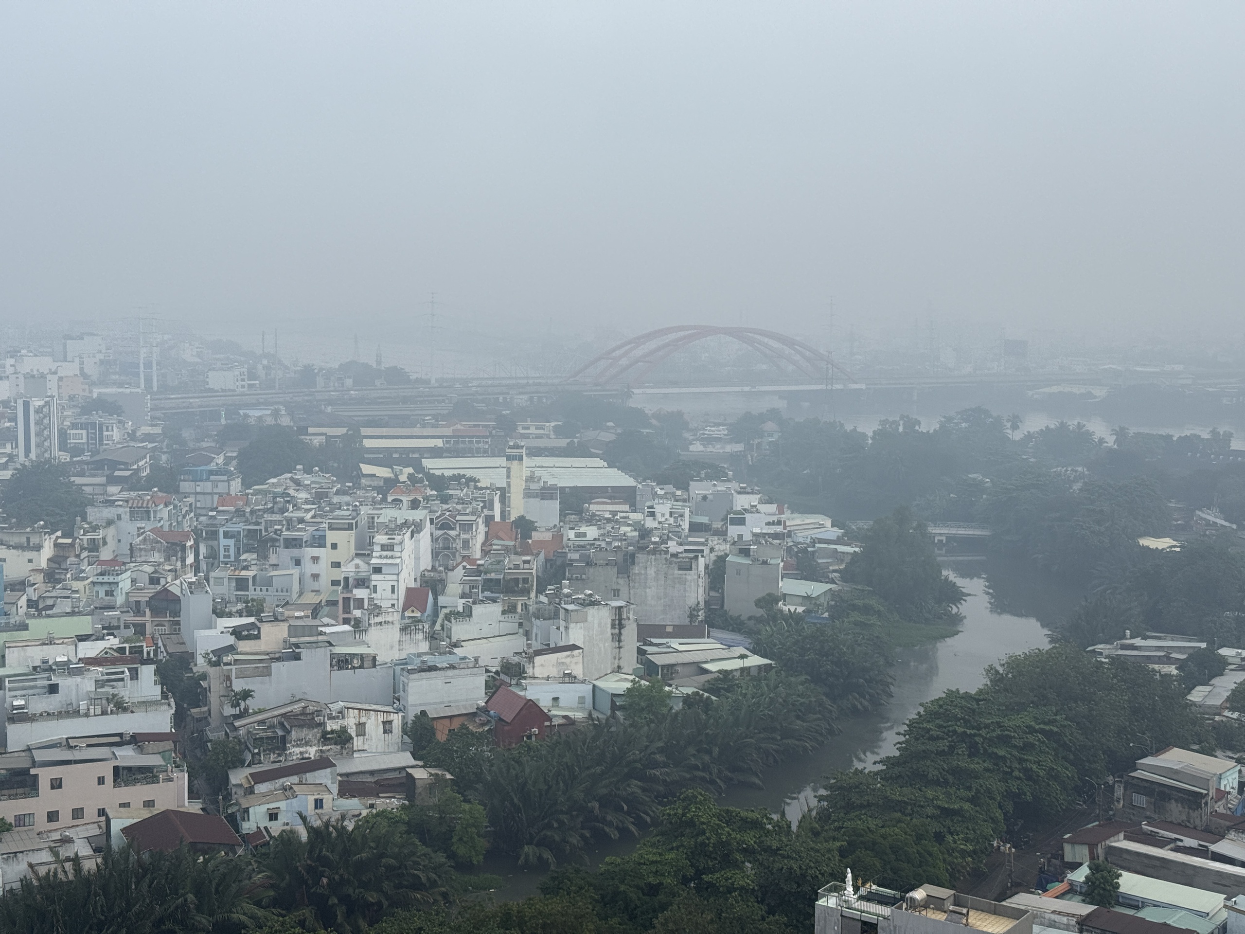 Sáng nay 2.11, thời tiết TP.HCM nhiều sương mù, trời âm u. Nhiều tòa cao ốc, nhà chung cư mờ ảo trong màn sương.