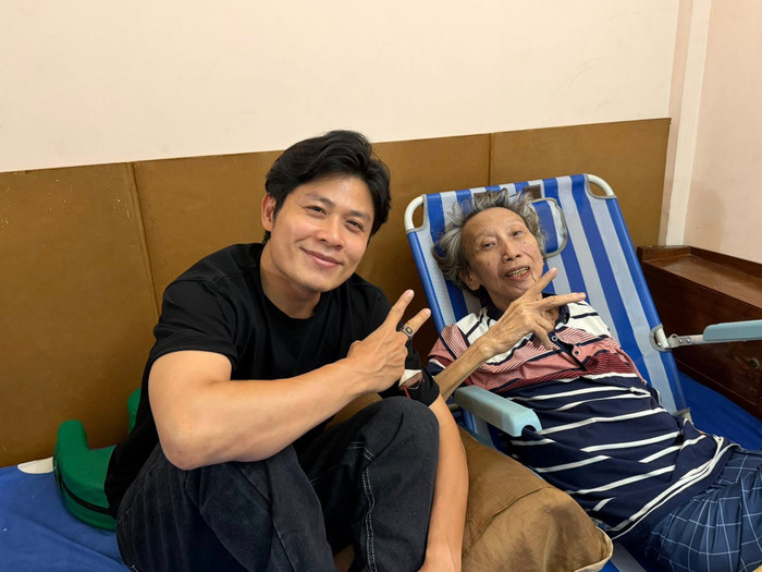 Danh ca Ngọc Sơn đến thăm hỏi sức khỏe của nhạc sĩ Thế Hiển. (Ảnh từ FBNV)