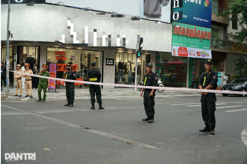 Phía bên trong khu vực phong tỏa, nhiều cảnh sát kiểm tra, khám xét một số tiệm vàng. Nhiều người dân hiếu kỳ đã đến theo dõi.